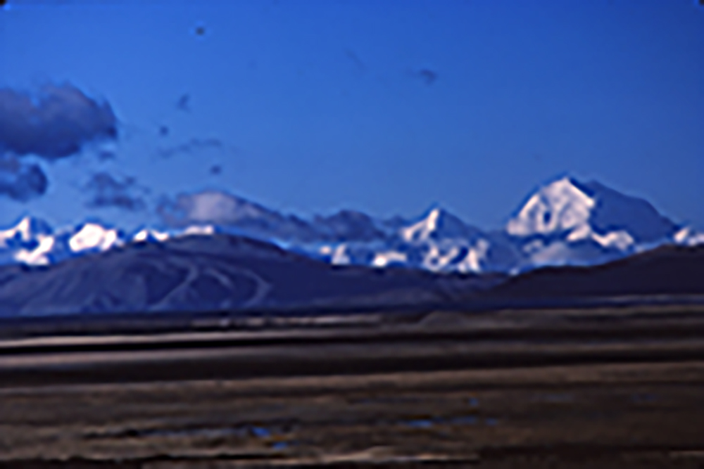 This picture was taken from the tibetan plateau on the way to the holy Mt. Kailash. In 1992 the journey took at least 30 days and all the equipment and food had to be carried by jeep and truck to reach the shores of Lake Manasrovar. From there it took 4 days of trekking to surround the holy mountain.