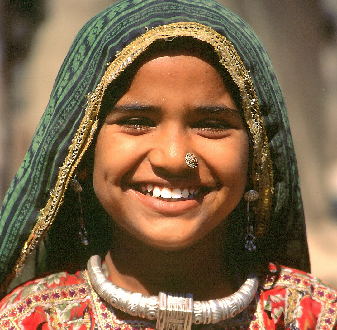 young ladies sharing a light moment at the camel fair in Jaisalmer, Rajasthan, India