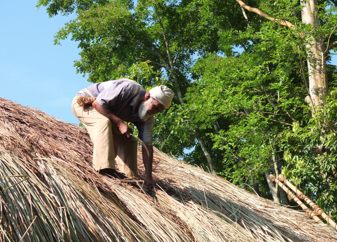 A three party working model connecting Spice Village, Periyar forest and native villagers, in which Elephant grass is used as a thatching material. The grass thatching keeps the inside of cottages cool, nullifiying the expenditure on energy. The native tribes are benefitted by employment and for the forest department benefits by the creation of fire lines inside the sanctuary.