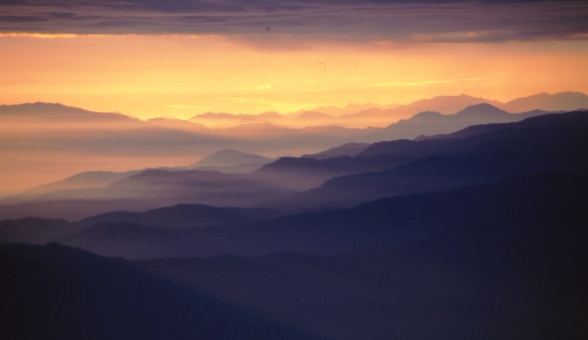 The sun rises gentle in the east, painting the sky and the hills with myriads of shades and colours.