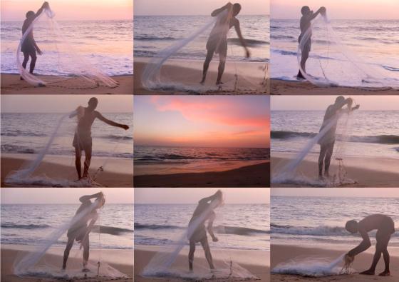 Evening by the sea. Wonderful sunset and a fisherman preparing his net by the shore. With elegance and style the … More